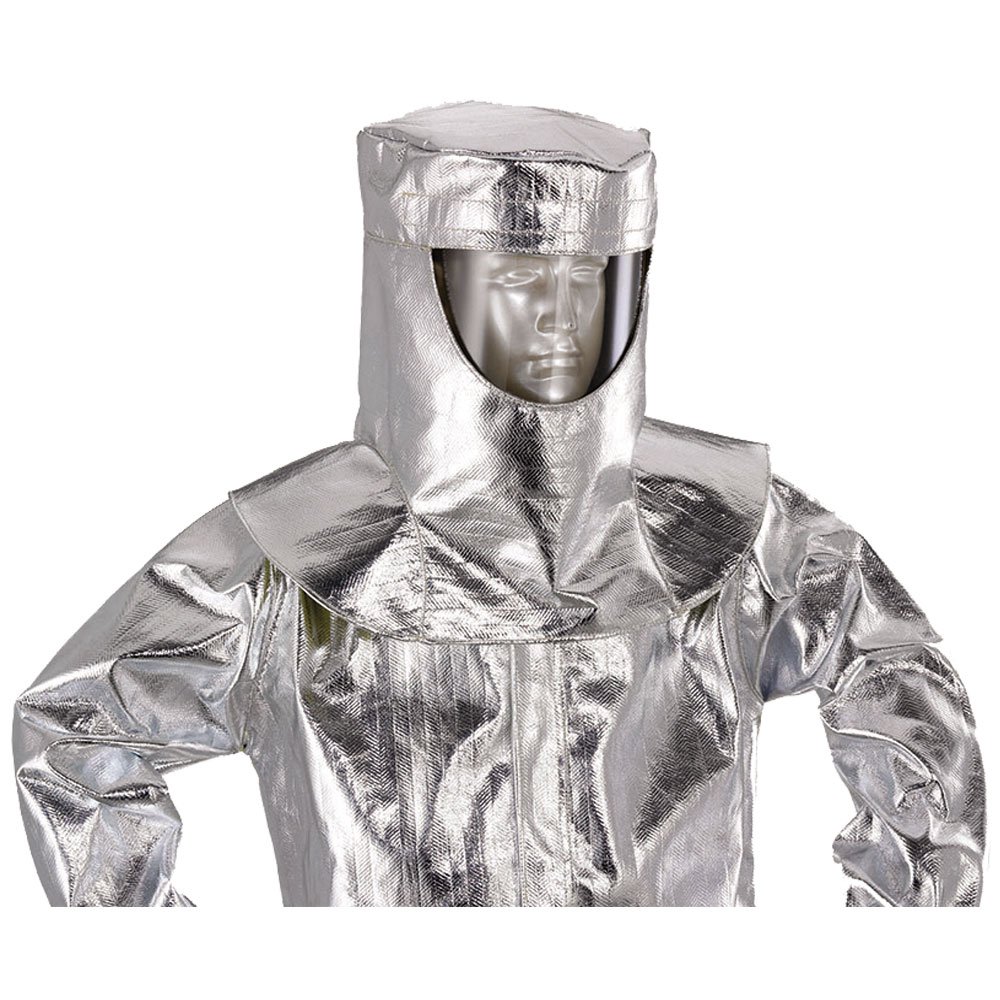 Alüminize kaplı koruyucu kıyafet gurubu ceket, pantolon, başlık, tozluk, önlük ve eldivenden oluşmaktadır.